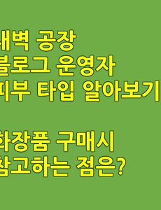 새벽공장1 새벽공장 운영자의 피부 타입과 화장품 구매시 참고하는 점 새벽공장 운영자 정보: 어떤 피부타입이시며, 화장품을 구매하실 때 어떤 부분을 참고하시나요? 오늘은 화장품 리뷰 혹은 정보를 확인하러 새벽공장 블로그를 찾아주시는 분들을 위해, 조금 더 도움이 되고자 필자의 피부타입과 화장품 구매시 참고하는 점에 대하여 정확하게 소개 하고자 한다. 피부타입. 일반적으로 말하는 방식으로 하자면, 필자의 피부 타입은 복합성이다. 얼굴을 구역별로 나누어 어떤 타입인지 더 자세히 적어보겠다. l 이마: 건조함을 전혀 느끼지 못함, 눈을 위로 치켜뜰 때 약간의 주름이 잡힘. l 눈가: 매우 건조함. 케어를 제대로 못할 경우 바로 비립종이 올라오거나 주름이 엄청 생김. 다크서클있음. l 볼: 눈 밑 볼은 매우 건조함을 느끼지만, 그곳을 제외한 나머지 볼부분은 전혀 건조하지 않음. .. 2018. 5. 2. 이전 1 다음